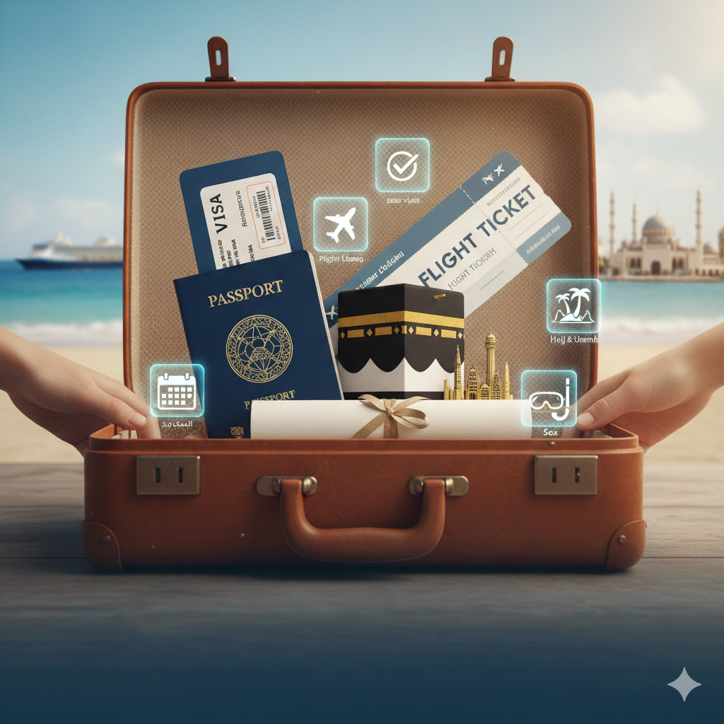 نعم، هذه هي ميزتنا! نقدم حزمة شاملة تبدأ من تأمين الفيزا والتذكرة حتى تنظيم إقامتك وأنشطتك
