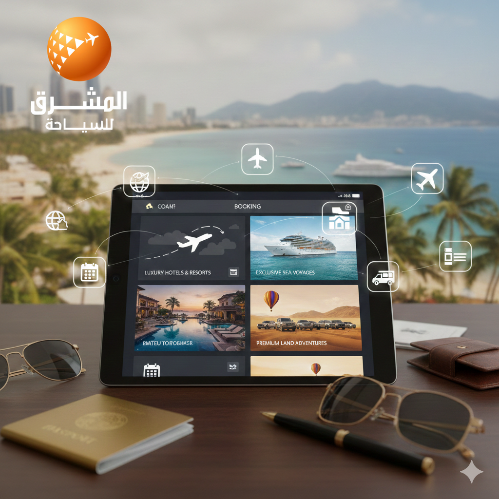المشرق للسياحة هي مؤسسة رائدة ومتخصصة في قطاع السفر والسياحة، تقدم مجموعة متكاملة من حلول الحجز والتنظيم اللوجستي لعملائها في مختلف القطاعات.