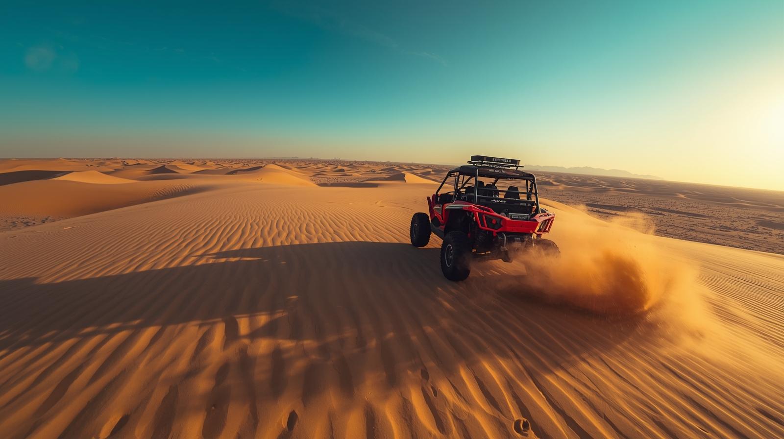 جرب قيادة البيتش باجي في صحراء شرم الشيخ. رحلة سفاري مثيرة بالدراجات الرباعية، استمتع بجمال غروب الشمس، وشاي بدوي أصيل. احجز مغامرتك الصحراوية الآن!